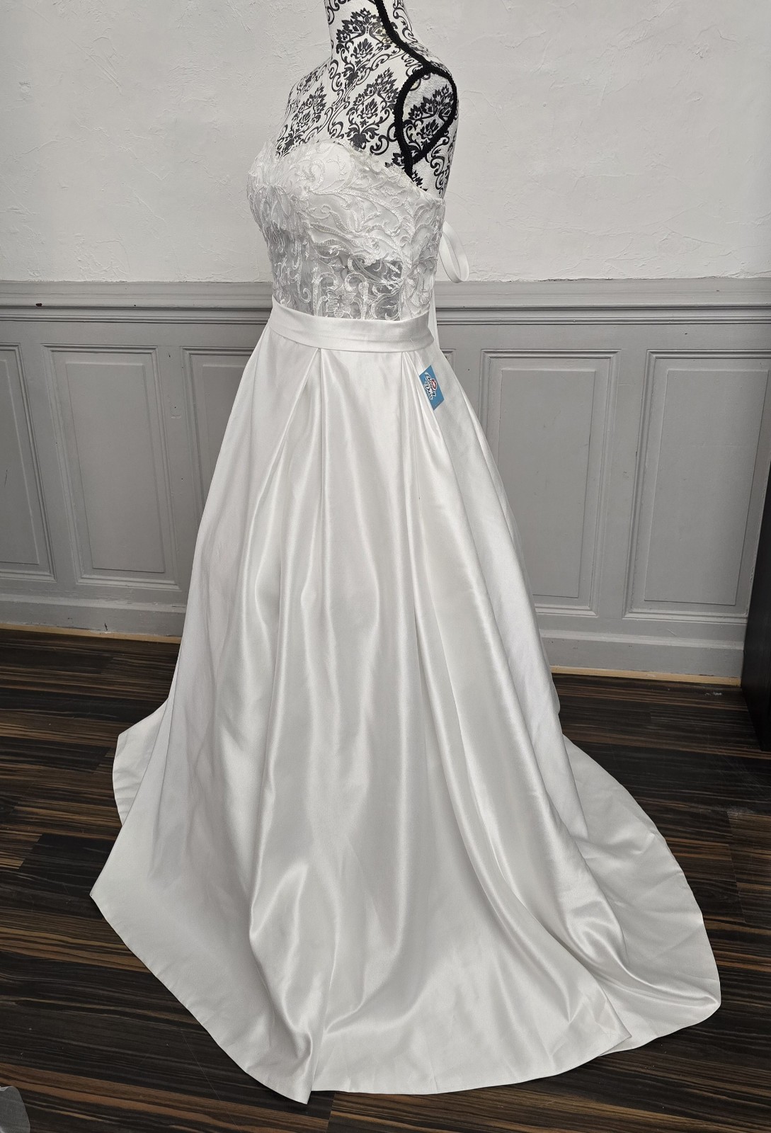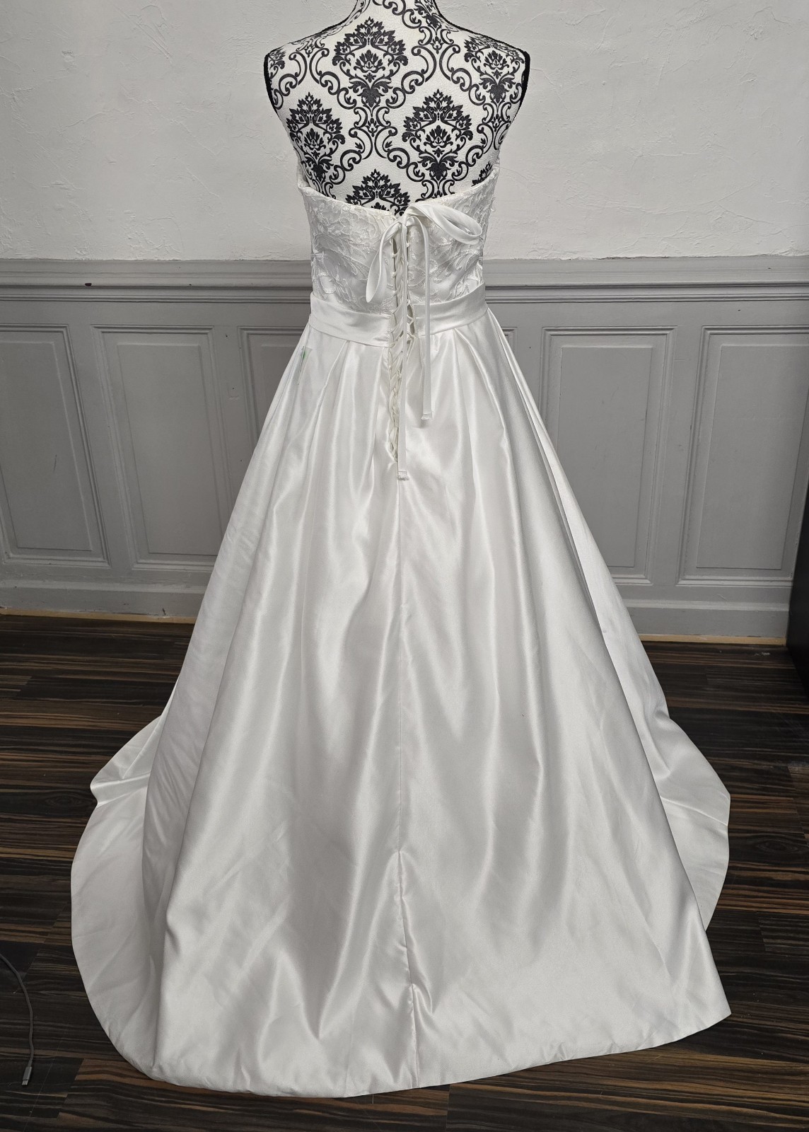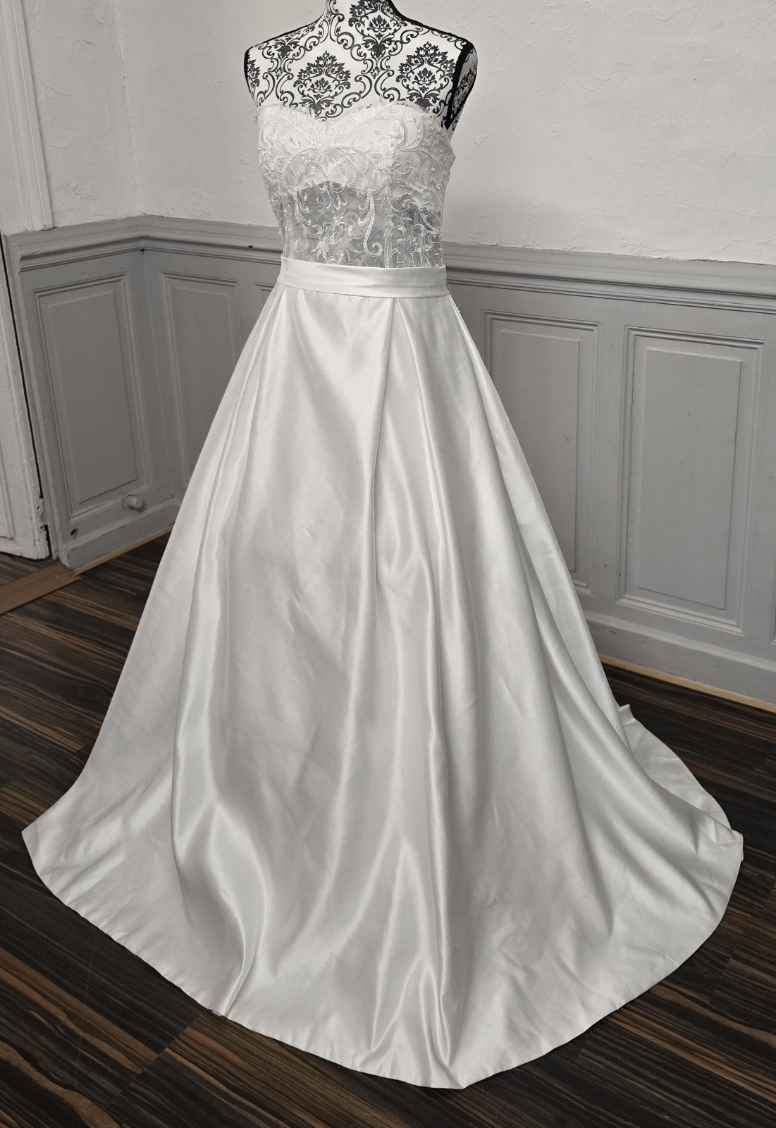 Robe de mariée bustier satin dentelle – Taille 40/42 ajustable – Coupe princesse