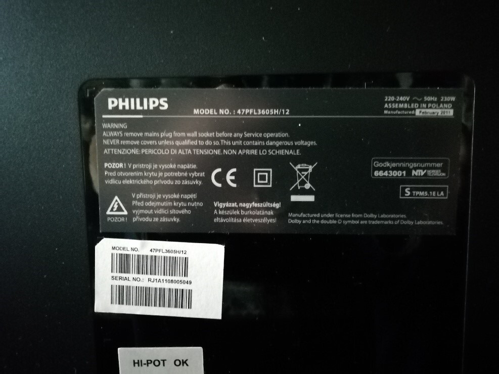 Télévision Philips modèle 47PFL3605H/12 (cause décès )