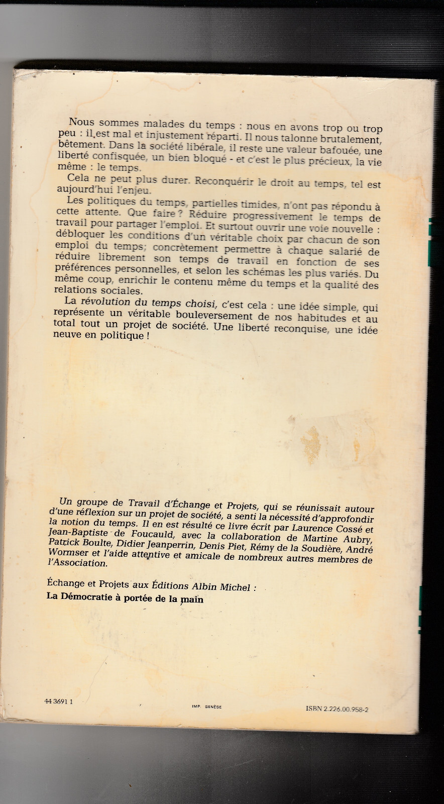 Jacques Delors (préface), Martine Aubry, Échange et Projets, Laurence Cossé, Jean-Baptiste de Foucauld, Patrick Boulte, Didier Jeanperrin, Denis Piet, Rémy de la Soudière, André Wormser