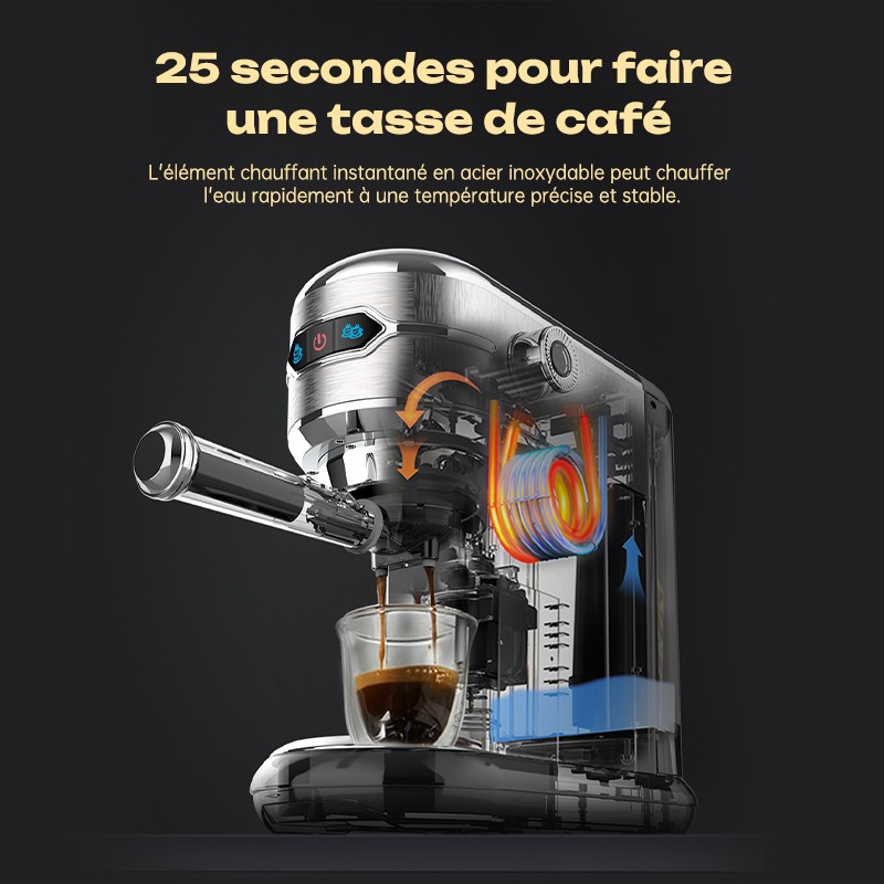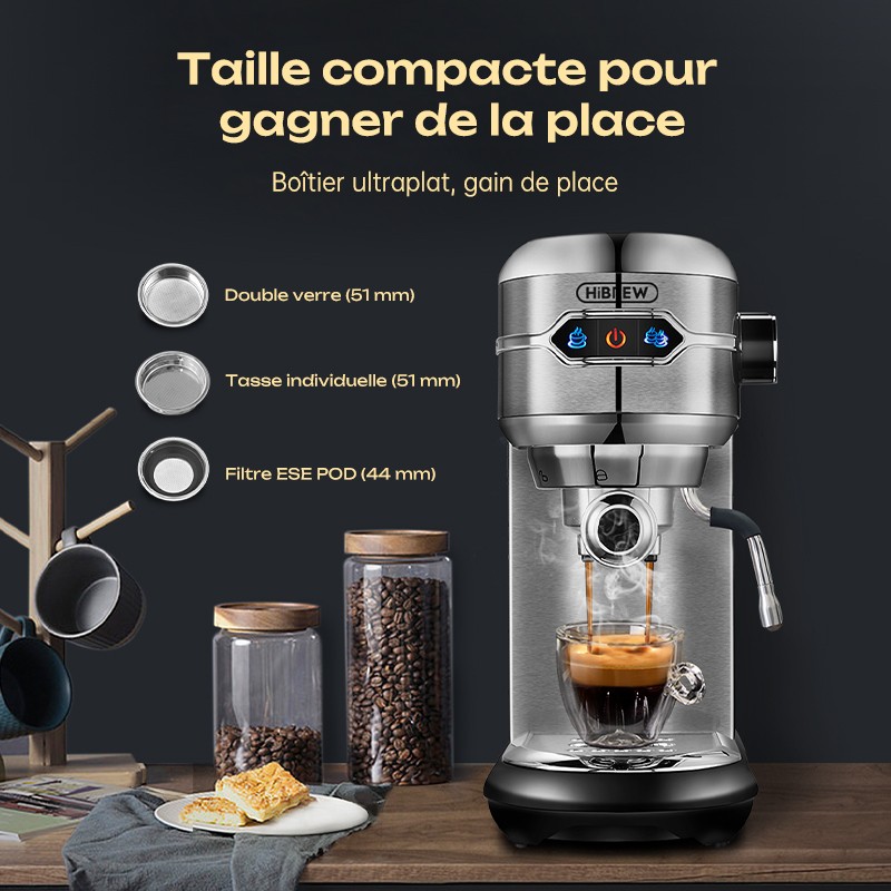 Cafetière expresso, 20 bar, semi-auto, super mince, inox, pour ESE et café moulu