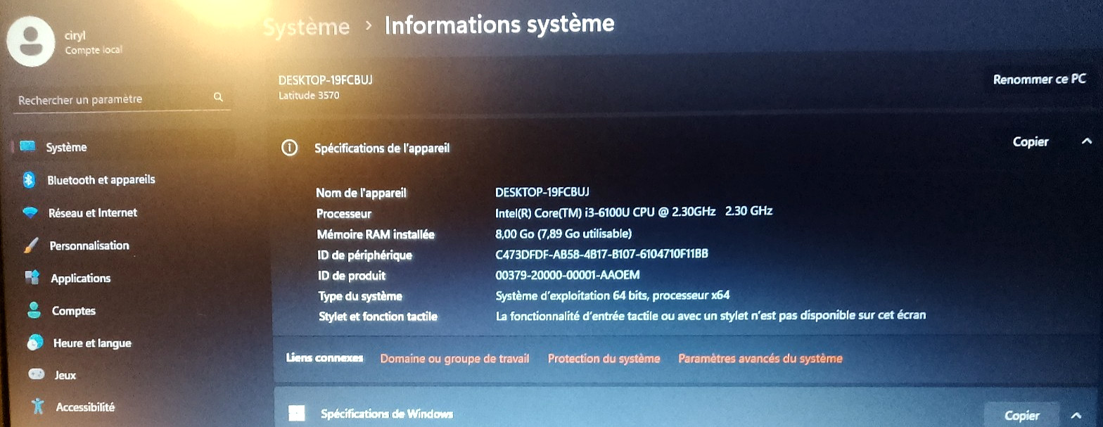 DELL Latiltude 3570 i3 2,30GHz/écran 15,6"/Ram 8Go/SSD 128Go/Azerty Rétroéclairé