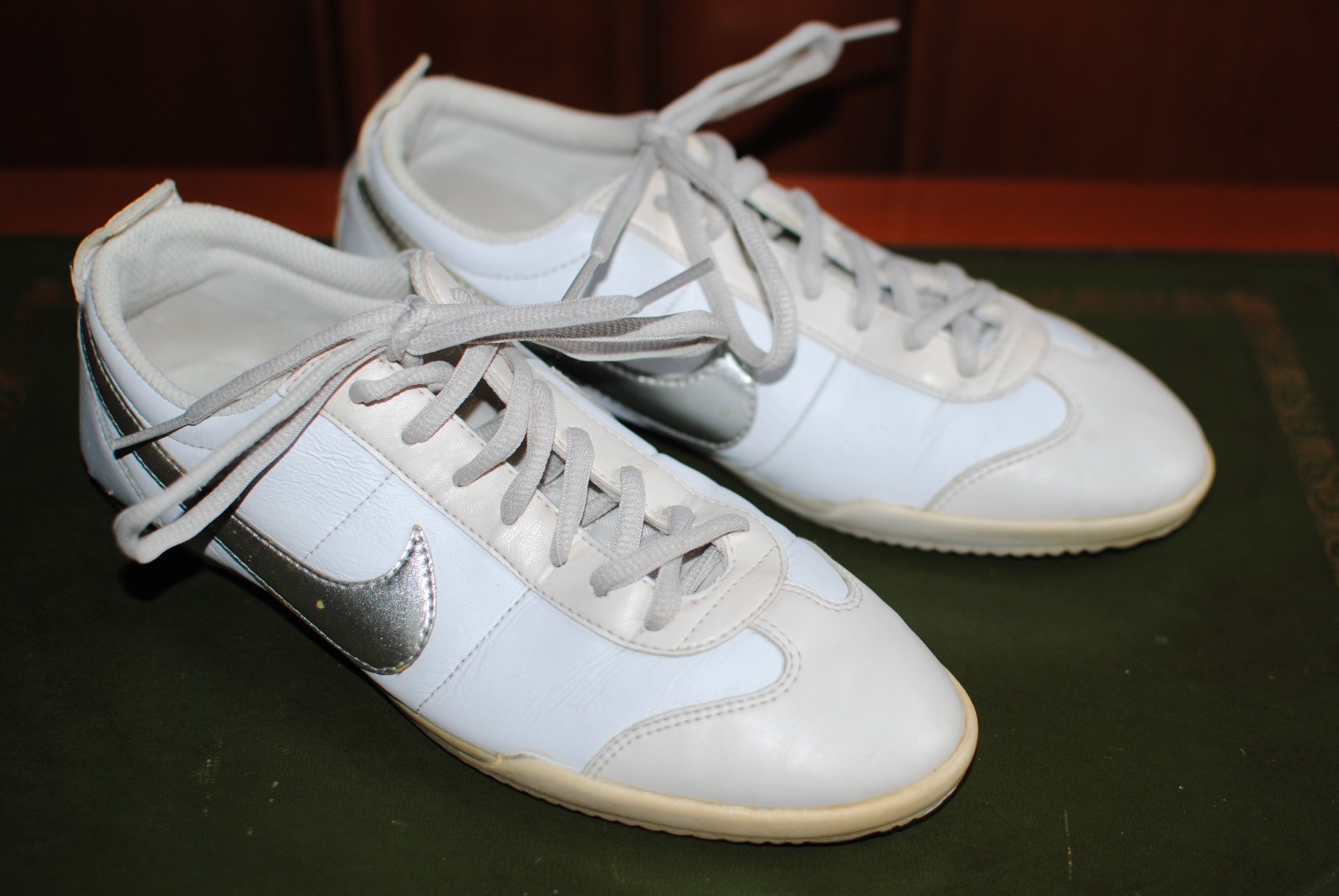 Sneakers, femme, Nike, Fivekay, cuir lisse, blanc et argenté, 37, vintage. TBE