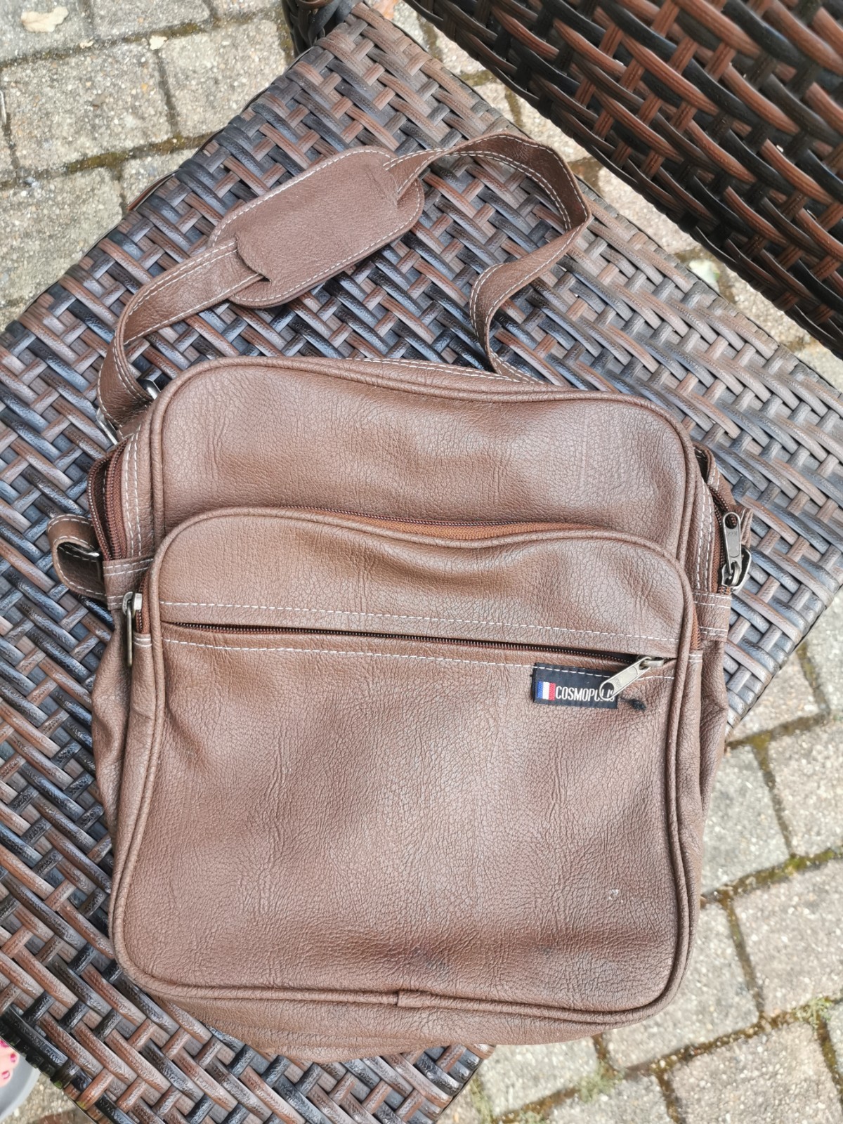 Le lot comprend pochettes et sacs à main Le sac est en très bon état, compte tenu son âge. Le sac est en état satisfaisant car le rabat se decoud et a un petit trou à l'intérieur du rabat. Gros sac à main avec les poignées, une grande poche à zip devant, à l’intérieur une petite poche simple et une poche à zip, au dos une poche à zip.