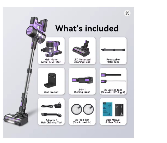 Modèle : S10. 【 Durée d'exécution de 50 minutes et 3 modes d'aspiration 】Aspirateur sans fil avec batteries de plus grande capacité de batterie (7 cellules). Puissance d'aspiration : 45 Kpa maximum. Turbo Brush.