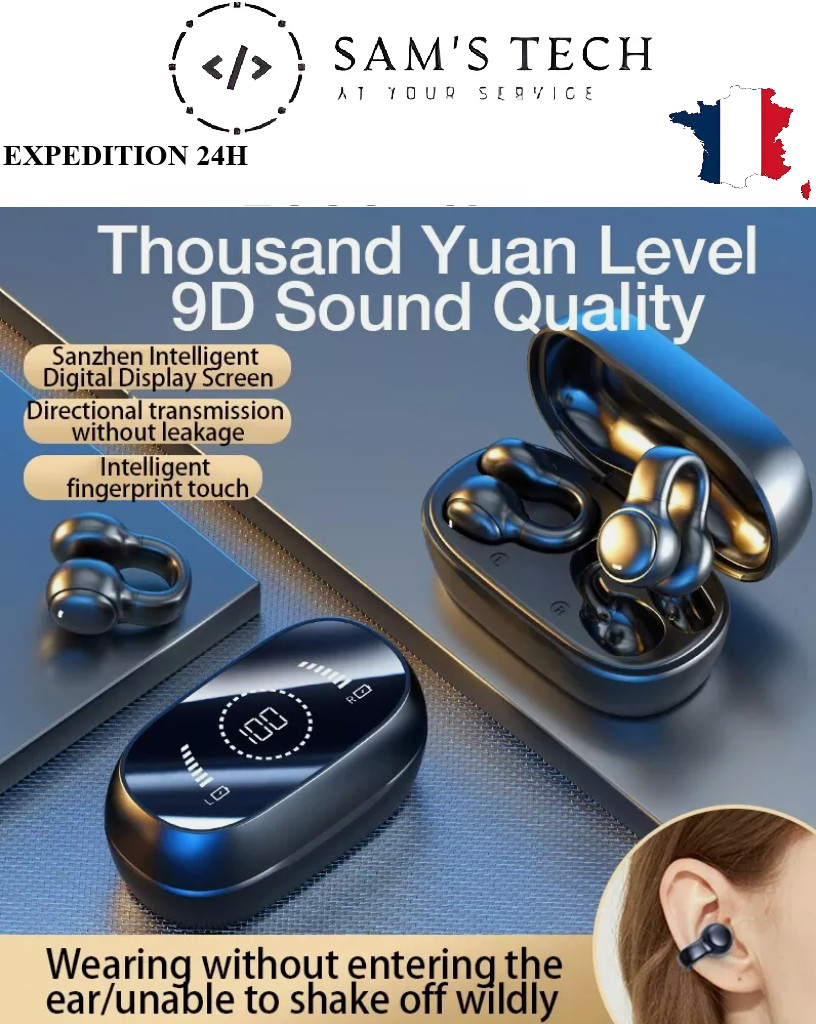 Bluetooth 5.4 : Connexion sans fil stable jusqu'à 10 mètres. Découvrez les Écouteurs Bluetooth M47, conçus pour offrir une expérience audio inégalée grâce à la technologie de conduction osseuse. Parfaits pour les sportifs et les amateurs de musique, les M47 sont légers et confortables pour une utilisation prolongée.
