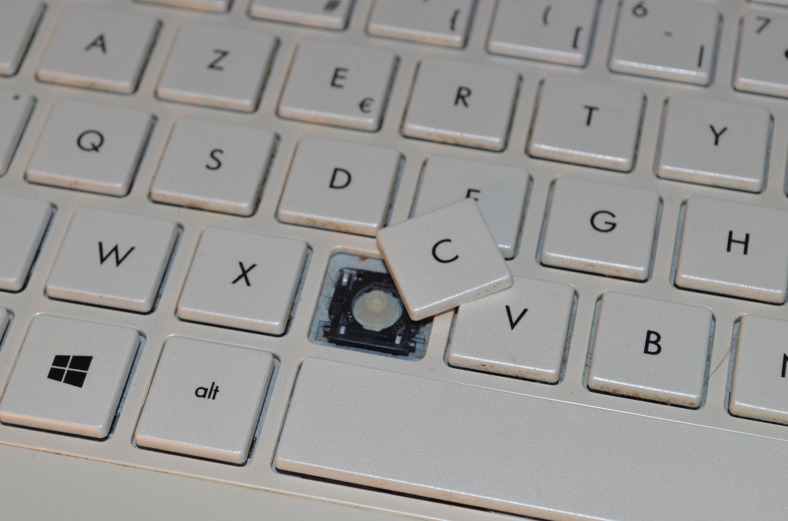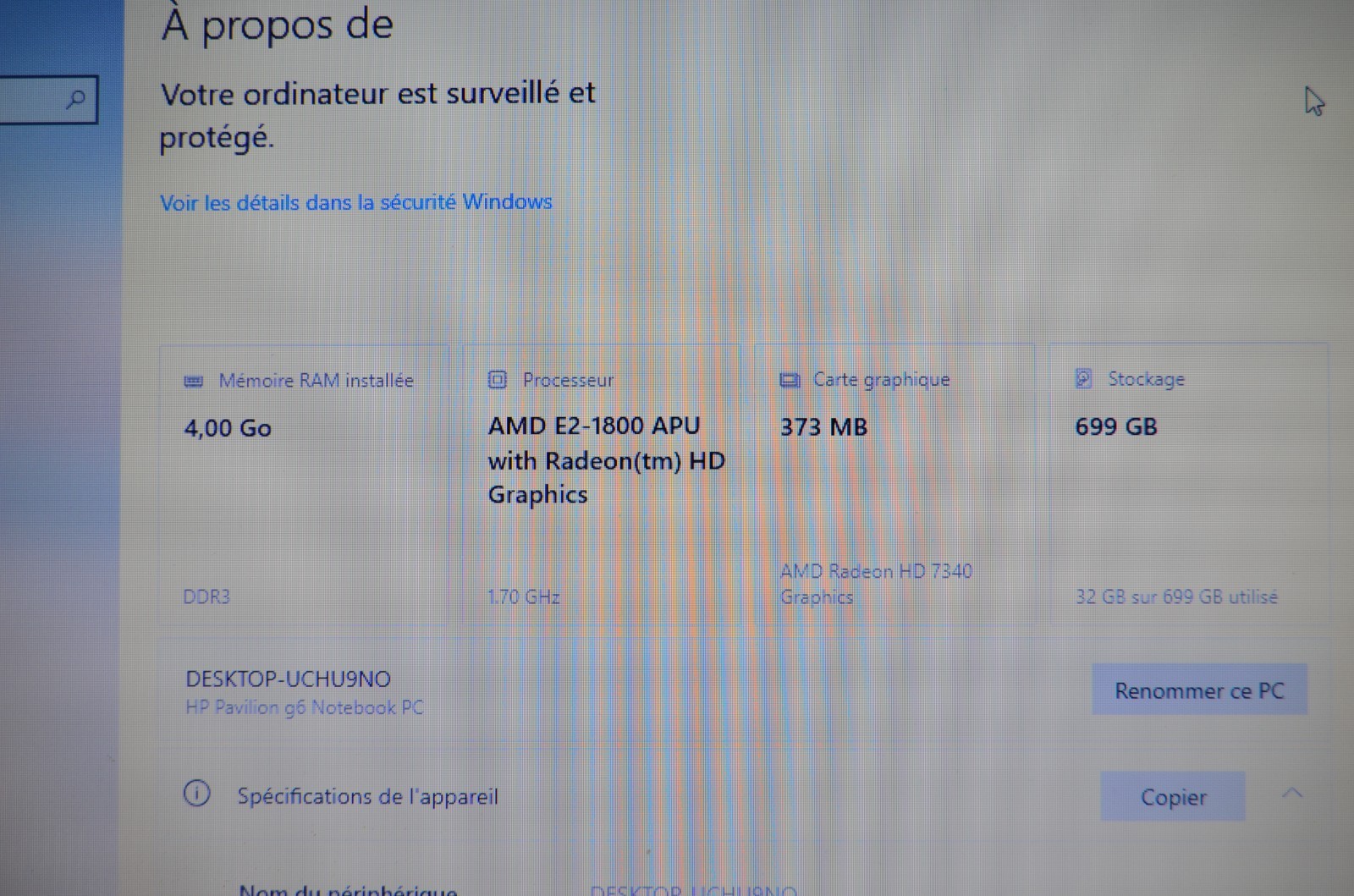 Réinitialisé sous Windows 10 Famille, activé. Touche "c" cassée, ne tient plus. Mauvais état esthétique, plasturgie endommagée dans un angle. Pas de batterie (retirée car hs).